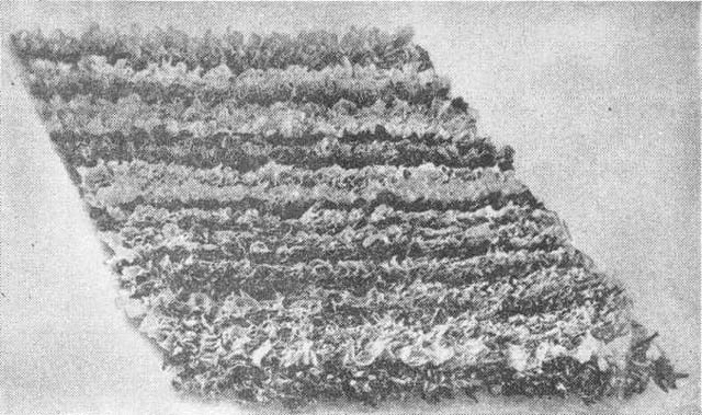 Этот пестрый коврик легко сделать самим. Нужно заготовить лишь 50 г хлопчатобумажной пряжи или тесьмы, прочный шнур, 4 палки диаметром 7 см, картон размером 13x20 см и матерчатые лоскутки самых разных ярких цветов. Такие лоскутки, вроде бы никуда больше не пригодные, всегда остаются после шитья, и часто их просто выбрасывают. При работе над ковриком ваша фантазия будет безгранична. Экспериментируйте. Различные чередования цветов дают интересный узор. Возможно, ваш коврик будет достоин того, чтобы стать настенным украшением.